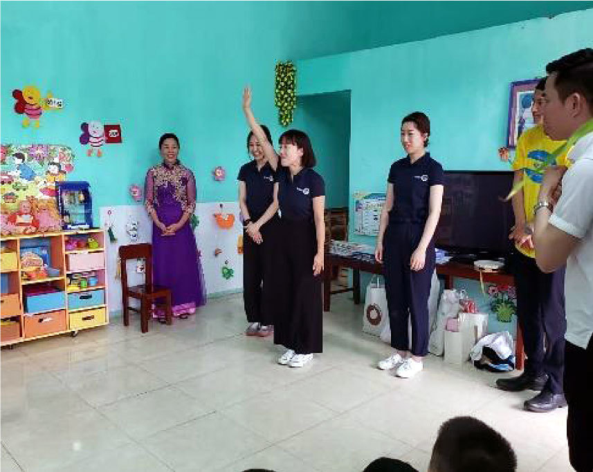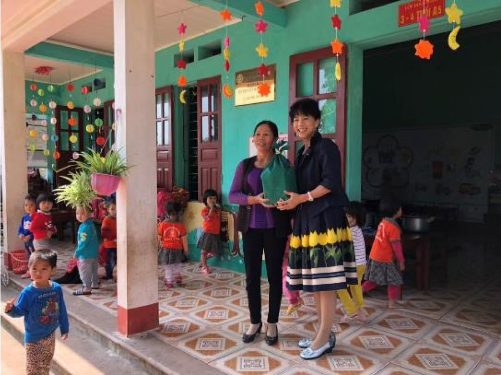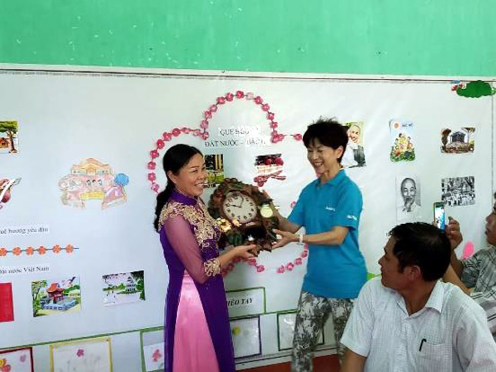 貴クラブ様の設立60周年の際には、ベトナムのラン・チャイン村初等教育学校におきまして、校舎増築やトイレ改修などのご支援をいただきました。本年の貴クラブ設立65周年に当たりましては、同初等教育学校の給食設備整備にご支援をいただくのみならず、2019年5月に来越いただき、ラン・チャイン村との教育交流といった精神的な支えもいただきました。