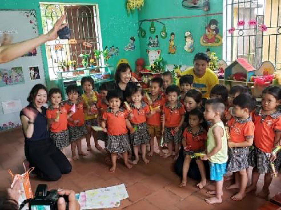 ベトナムへ向かうまでに、折り紙を用意したり、手遊びを考えたりしていましたが、当日になるまで子どもたらがどんな反応をしてくれるのか不安でいっぱいでした。実際行ってみると、子どもたらは、私たちをしっかりと見て一生懸命真似をしようとしてくれる姿や、笑顔で手を振ってくれる姿を見て、ドキドキしていた気持ちもどこかにいき、子どもたらと「もっと一緒に遊びたい!」と言う気持になるほどでした。