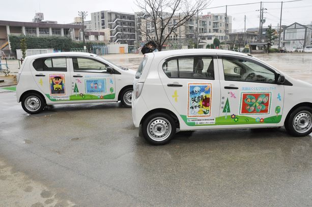 池田市の小学校及び義務教育学校に通う1~6年生に、年末年始の約1ヶ月間で募ったところ、500点に迫る作品の応募を頂き、厳選された作品が池田市の公用車やごみ収集車計10台にラッピングされ、先日2月16日の式典を皮切りに、池田市内を走っています。