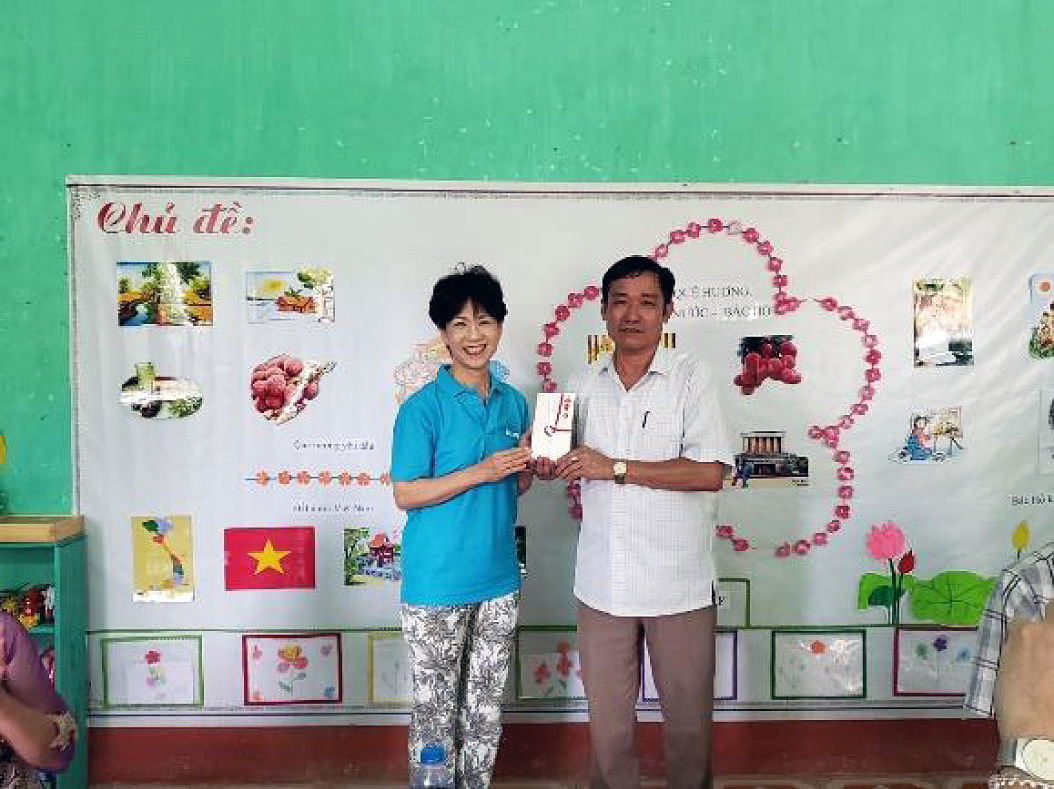 貴クラブ様の設立60周年の際には、ベトナムのラン・チャイン村初等教育学校におきまして、校舎増築やトイレ改修などのご支援をいただきました。本年の貴クラブ設立65周年に当たりましては、同初等教育学校の給食設備整備にご支援をいただくのみならず、2019年5月に来越いただき、ラン・チャイン村との教育交流といった精神的な支えもいただきました。